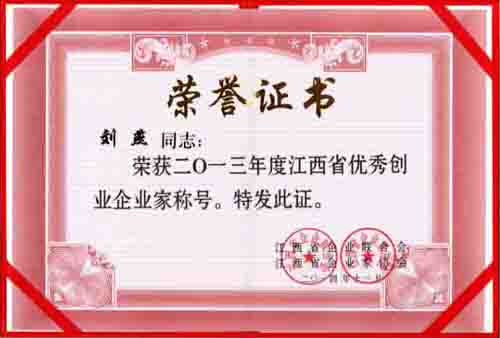江西省優(yōu)秀創(chuàng)業(yè)企業(yè)家稱號