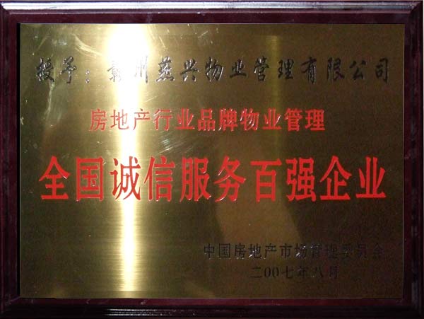 房地產(chǎn)行業(yè)品牌物業(yè)管理全國誠信服務(wù)百強(qiáng)企業(yè)