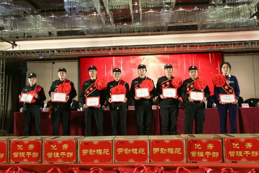 集團(tuán)副總經(jīng)理徐桂香宣讀《關(guān)于表彰2019年度先進(jìn)個(gè)人、先進(jìn)集體的決定》:南昌分公司、永修分公司等16個(gè)分公司評(píng)為“優(yōu)秀分公司”;贛州商會(huì)大廈、贛州市稅務(wù)局等10個(gè)項(xiàng)目評(píng)為“優(yōu)秀示范項(xiàng)目”;鐘德全、鄧小紅、郭小蘭3人評(píng)為“勞動(dòng)模范”;舒星、徐理文等10人評(píng)為“優(yōu)秀管理干部”;徐振民、黎華等21人評(píng)為“保文創(chuàng)衛(wèi)標(biāo)桿”;吳子青、梁傳華等58人評(píng)為“服務(wù)之星”;劉寧生、余樟春等33人評(píng)為“愛崗敬業(yè)之星”;邱桂華、陳世洪等10人評(píng)為“安全守護(hù)之星”;曹運(yùn)莉、李冬梅等11人評(píng)為“優(yōu)秀志愿者”;盧建宏、肖忠良等13人評(píng)為“工會(huì)積極分子”。