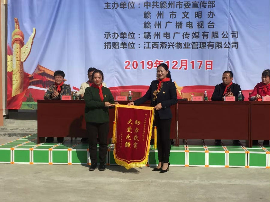走在歲末暖陽的季節(jié),2019年12月17日上午,江西燕興物業(yè)公司董事長帶著燕興人的情,深入寧都縣釣峰鄉(xiāng)出席燕興物業(yè)“飲水思源,愛灑蘇區(qū)”公益捐贈活動,并向釣峰鄉(xiāng)中小學(xué)捐贈圖書2000余冊。贛州廣播電視臺中心城區(qū)頻道總監(jiān)廖先輝;寧都縣教科體局副局長黃瑞平;寧都縣釣峰鄉(xiāng)宣傳統(tǒng)戰(zhàn)委員楊晶晶 ;寧都縣釣峰鄉(xiāng)副鄉(xiāng)長謝珍珍;贛州廣播電視臺贛州電廣傳媒有限公司副總經(jīng)理何嵩貴;江西燕興物業(yè)管理有限公司運營總監(jiān)童章杰 ;寧都縣釣峰中小學(xué)校長王娟英出席捐贈儀式。捐贈儀式由贛州廣播電視臺贛州電廣傳媒有限公司副總經(jīng)理何嵩貴主持。