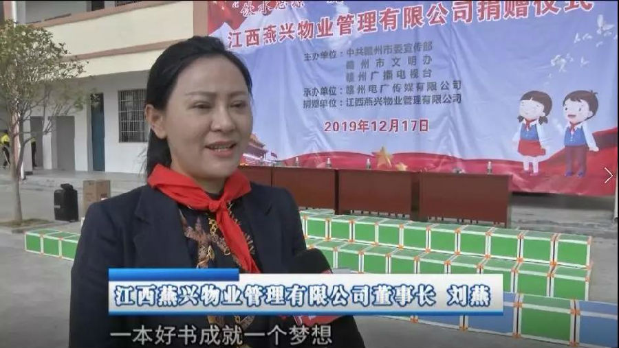 公司董事長劉燕在捐贈儀式上說:“一本好書成就一個夢想,捐贈一本書,奉獻一份愛,希望學(xué)校越辦越好,為社會培養(yǎng)出更多更優(yōu)秀的人才。我們燕興物業(yè)將繼續(xù)秉承中華民族的傳統(tǒng)美德,飲水思源、感恩社會、回饋社會、不忘初心、繼續(xù)關(guān)注教育,為助力社會公益事業(yè),關(guān)注蘇區(qū)發(fā)展,盡燕興人的綿薄之力?!?/p>