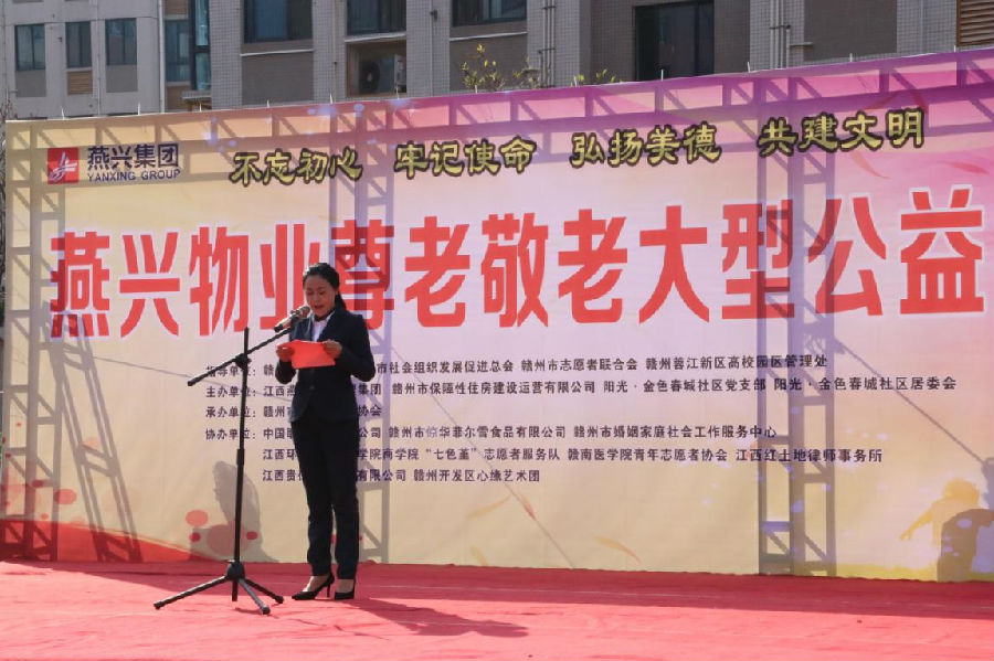 在舉國(guó)認(rèn)真學(xué)習(xí)宣傳貫徹黨的十九屆四中全會(huì)精神之際,以及深入推進(jìn)“不忘初心、牢記使命”主題教育之時(shí),2019年11月9日,燕興集團(tuán)黨委聯(lián)合贛州市慈善總會(huì)、贛州市合眾公益協(xié)會(huì)、贛州市保障性住房建設(shè)運(yùn)營(yíng)有限公司、陽(yáng)光金色春城社區(qū)黨支部、社區(qū)居委會(huì)在陽(yáng)光金色春城保障性住房舉辦“燕興物業(yè)尊老敬老大型公益活動(dòng)”,進(jìn)一步堅(jiān)定“感黨恩聽(tīng)黨話跟黨走”的信念,大力弘揚(yáng)中華民族尊老敬老愛(ài)老助老的傳統(tǒng)美德。