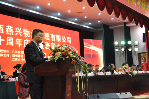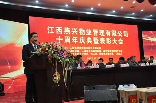 2013年12月26日下午2時,參加燕興物業(yè)成立十周年慶典表彰大會的領(lǐng)導、嘉賓和員工們已陸續(xù)來到贛州賓館一號會場,在嘹亮的國歌聲中大會由吉安商會會長劉振德宣布開始。