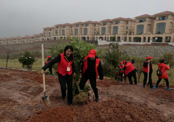 在大家的團結(jié)奮斗下,經(jīng)過幾個小時的勞動,志愿者們共栽種楊梅樹62株,樟樹23株。參加活動的志愿者們紛紛表示,參加此次植樹活動,更深刻的理解了環(huán)保的深遠意義,在今后的生活中將以身作則,帶動身邊的同事、朋友積極投身到環(huán)保行動中去.