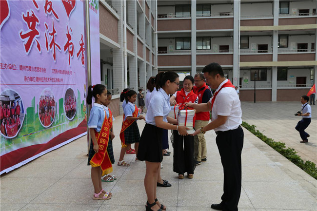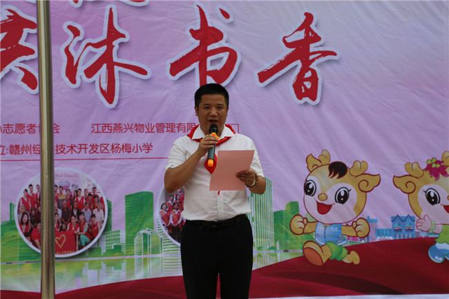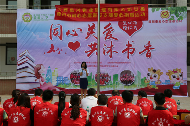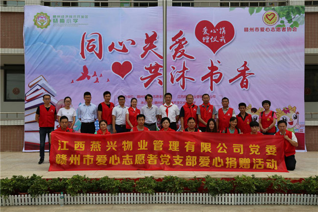 2018年6月11日上午,在贛州經(jīng)濟技術(shù)開發(fā)區(qū)楊梅小學校園內(nèi),由江西燕興物業(yè)管理有限公司黨委和贛州市愛心志愿者黨支部共同主辦的“同心關(guān)愛·共沐書香”愛心捐書儀式在這里舉行。