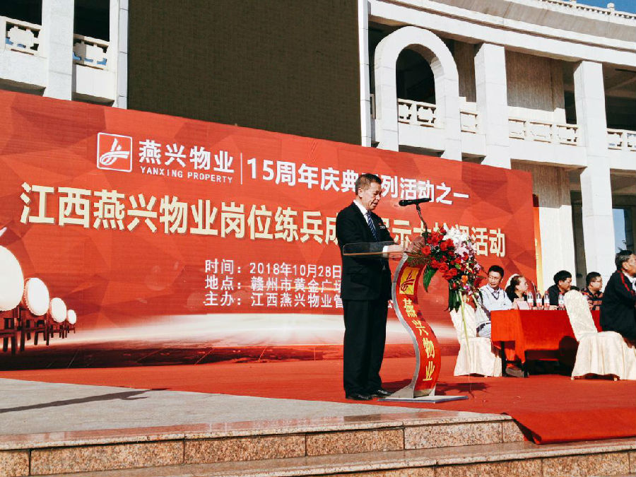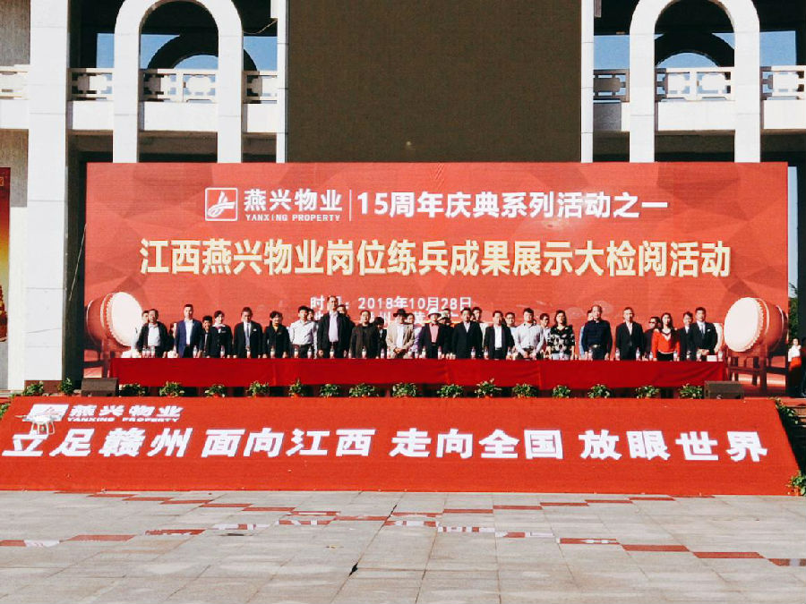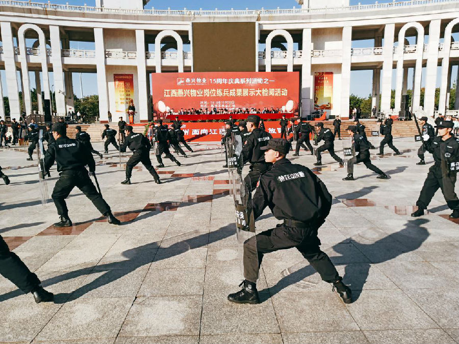 2018年10月28日,江西燕興物業(yè)管理有限公司在贛州市黃金廣場(chǎng)隆重舉行崗位練兵成果展示大演練活動(dòng)。參檢員工以嚴(yán)整的隊(duì)姿和精湛的技能展示,匯報(bào)了崗位練兵的成果,展示了強(qiáng)大的綜合素質(zhì)和良好的精神風(fēng)貌。相關(guān)主管部門(mén)、行業(yè)協(xié)會(huì)和兄弟公司領(lǐng)導(dǎo)、業(yè)主代表等應(yīng)邀參加活動(dòng)。
