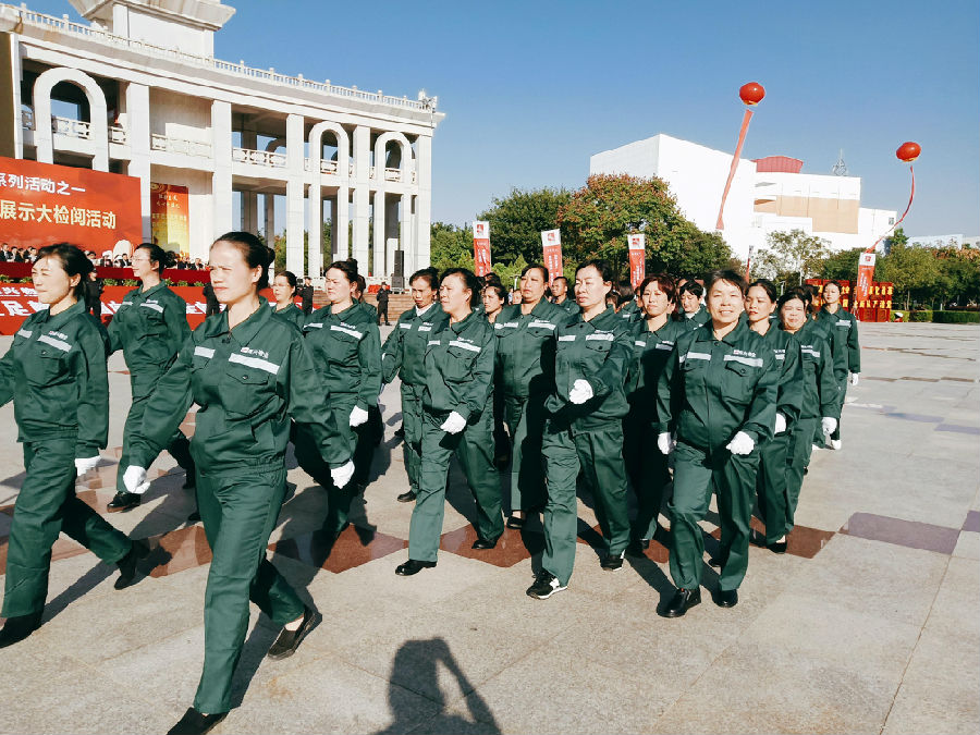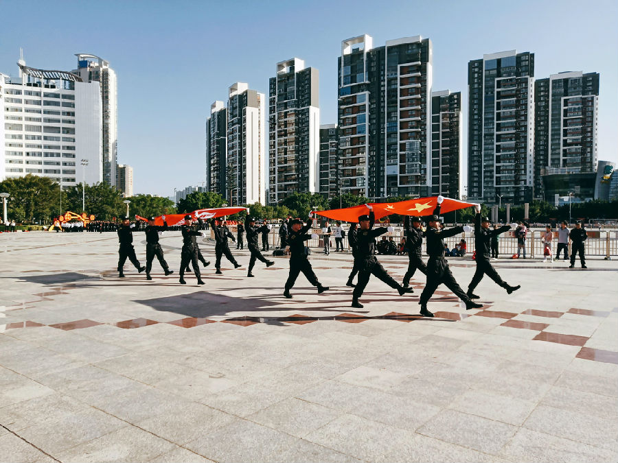 15時(shí)20分,黃金廣場(chǎng)艷陽(yáng)高照,人聲鼎沸,大檢閱活動(dòng)在莊嚴(yán)的《中華人民共和國(guó)國(guó)歌》聲中拉開(kāi)帷幕。公司黨委副書(shū)記、總經(jīng)理劉南斗首先發(fā)表熱情洋溢致辭。劉總指出:開(kāi)展崗位練兵成果展示,是我們深入貫徹黨的十九大精神,落實(shí)“質(zhì)量強(qiáng)國(guó)”發(fā)展戰(zhàn)略,堅(jiān)持“質(zhì)量第一”價(jià)值導(dǎo)向的重要行動(dòng),也是展現(xiàn)物業(yè)管理從業(yè)人員專(zhuān)業(yè)形象和精神風(fēng)貌,踐行2018年物業(yè)管理行業(yè)服務(wù)質(zhì)量提升年工作主題,更是增強(qiáng)優(yōu)質(zhì)物業(yè)服務(wù)供給能力、更好地滿(mǎn)足廣大業(yè)主對(duì)優(yōu)質(zhì)物業(yè)服務(wù)的需求,讓更多的人知道物業(yè),讓更多人了解物業(yè),讓更多的人支持物業(yè)的具體舉措。劉總表示,通過(guò)這次崗位練兵技能展示,我們要以練兵促提升,以展示促發(fā)展,創(chuàng)新行業(yè)人才培養(yǎng)、選拔、激勵(lì)機(jī)制,提高行業(yè)從業(yè)人員的專(zhuān)業(yè)能力和綜合素質(zhì),為物業(yè)行業(yè)轉(zhuǎn)型升級(jí)和高質(zhì)量發(fā)展提供技術(shù)支撐和人才保障,讓物業(yè)成為有奔頭的產(chǎn)業(yè),讓物業(yè)成為有吸引力的職業(yè),讓物業(yè)成為讓人尊重的行業(yè)。
