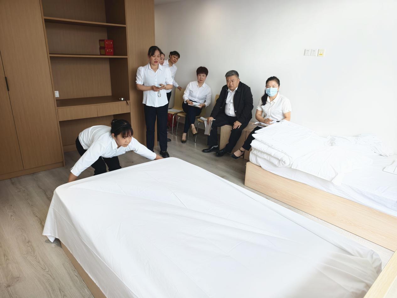 4月27日下午,贛州銀行海天大廈住宿部?jī)?nèi)氣氛熱烈,一場(chǎng)別開生面的中式鋪床技能大賽火熱開賽,以專業(yè)技能大練兵的方式迎接五一假期的到來。總公司運(yùn)營副總經(jīng)理童章杰、運(yùn)營經(jīng)理盧建宏、辦公室主任曹運(yùn)莉蒞臨項(xiàng)目現(xiàn)場(chǎng),化身專業(yè)評(píng)委,為賽事的專業(yè)性保駕護(hù)航。